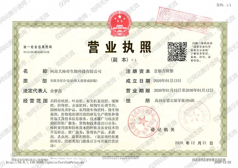 大柿哥營業執照信息公示